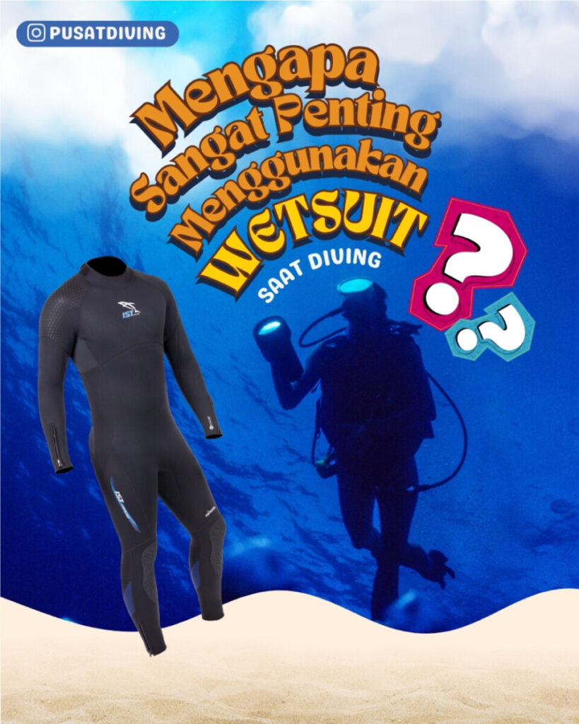 Wetsuit penting digunakan saat diving karena memberikan perlindungan termal dengan mengurangi kehilangan panas tubuh di dalam air, sehingga membantu mencegah hipotermia. Bahan neoprene pada wetsuit menjebak lapisan tipis air di antara kulit dan pakaian, yang kemudian dihangatkan oleh suhu tubuh, menjaga tubuh tetap hangat dan nyaman.