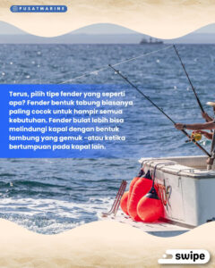 Terus, pilih tipe fender yang seperti apa? Fender bentuk tabung biasanya paling cocok untuk hampir semua kebutuhan. Fender bulat lebih bisa melindungi kapal dengan bentuk lambung yang gemuk -atau ketika bertumpuan pada kapal lain.