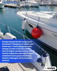 Berapa banyak fender yang kamu butuhkan? Patokannya adalah satu fender per 3 meter panjang kapal, dengan jumlah minimal 3 fender. Satu di bagian terlebar kapal, satu di buritan kapal dan satu lagi di depan. Usahakan kamu punya beberapa fenders cadangan untuk keadaan darurat.