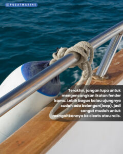 Terakhir, jangan lupa untuk mengencangkan ikatan fender kamu. Lebih bagus kalau ujungnya sudah ada bolongan (loop), jadi sangat mudah untuk mengaitkannya ke cleats atau rails.