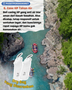 Beli casing HP yang anti air biar aman dari basah-basahan. Bisa dicelup, tetap responsif untuk sentuhan layar, dan kunciannya rapat supaya HP kamu gak kemasukan air.