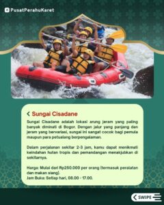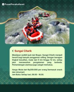 Rafting, atau arung jeram, adalah salah satu cara terbaik untuk merasakan keindahan alam sembari memacu adrenalin. Kota Bogor, yang terkenal dengan keindahan alamnya, memiliki banyak lokasi rafting yang siap mengajakmu berpetualang.