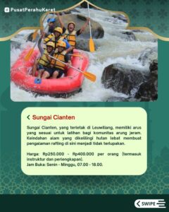 Sungai Cianten, yang terletak di Leuwiliang, memiliki arus yang sesuai untuk latihan bagi komunitas arung jeram. Keindahan alam yang dikelilingi hutan lebat membuat pengalaman rafting di sini menjadi tidak terlupakan.