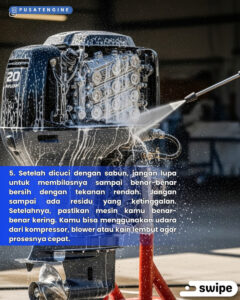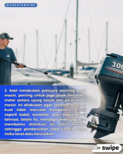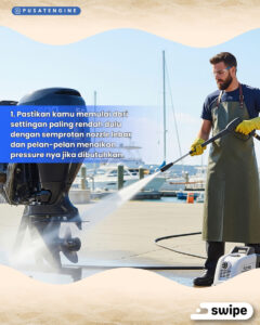 Membersihkan mesin tempel Anda menggunakan pressure washer bisa sangat efektif menghilangkan garam dan kotoran, mempercantik tampilan, dan membantu perawatan. Namun, ini harus dilakukan dengan hati-hati. Meskipun mesin tempel dirancang tahan terhadap berbagai elemen, tekanan air yang tinggi dapat merusak komponen kelistrikan yang sensitif, segel, paking, bahkan mengelupas cat atau stiker, yang bisa berujung pada perbaikan mahal jika tidak dilakukan dengan benar. Berikut adalah 7 Tips untuk pressure washing mesin kamu tanpa bikin rusak !!!