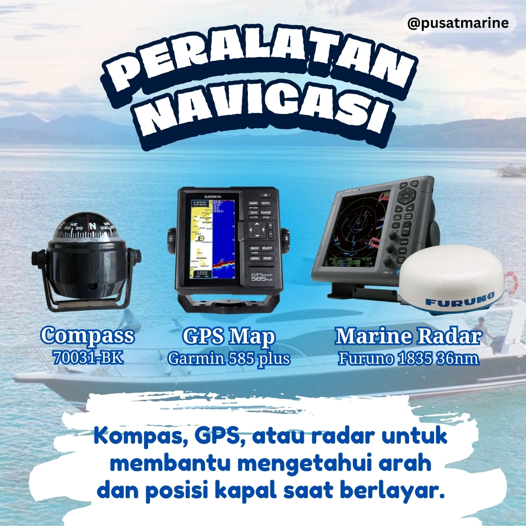 2. Peralatan Navigasi: Termasuk kompas, GPS, atau radar untuk membantu mengetahui arah dan posisi kapal saat berlayar