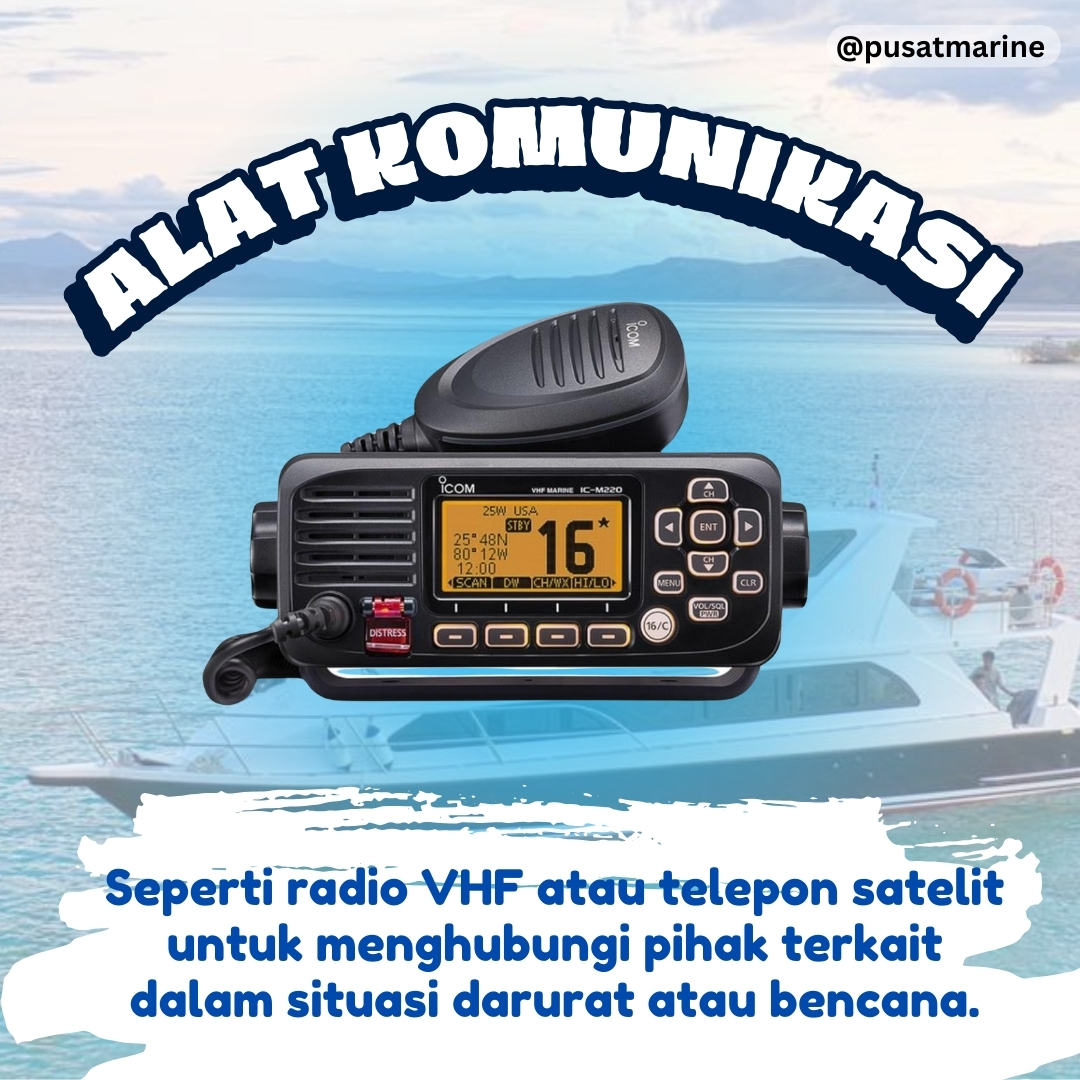 5. Alat Komunikasi: Seperti radio VHF atau telepon satelit untuk menghubungi pihak terkait dalam situasi darurat atau bencana