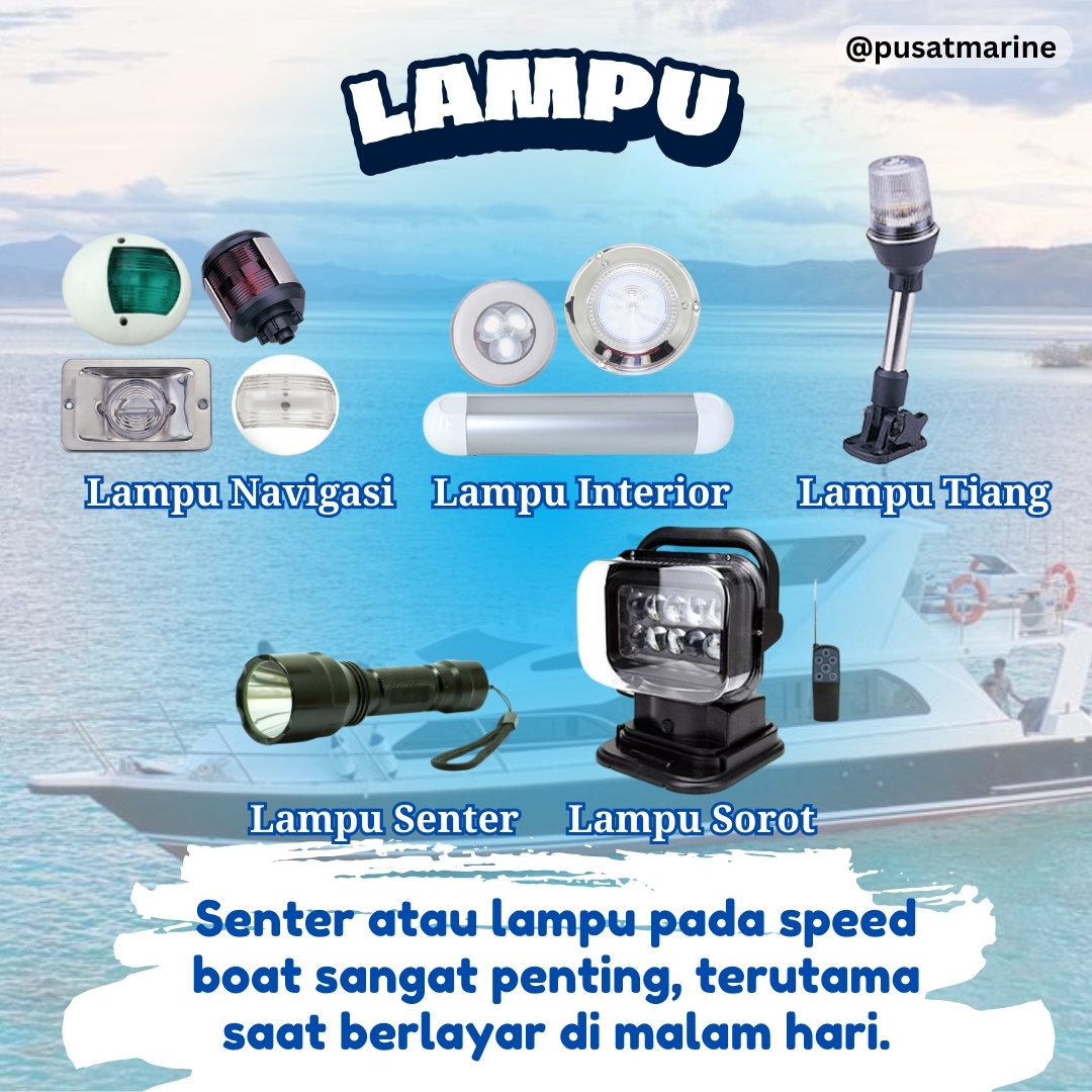 4. Lampu: Senter atau lampu pada speed boat sangat penting, terutama saat berlayar di malam hari