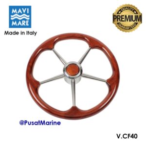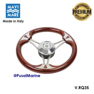 Setir Kapal Steeering Wheel In Stainless Steel With Mahogany Handgrip Ø 350 MM. V.RQ35 Made In Italy Mavimare
