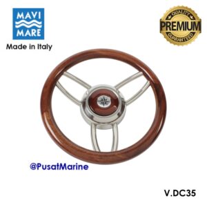Setir Kapal Steering Wheel In Stainless Steel With Mahogany Handgrip Ø 350 MM Made In Italy V.DC35 Mavimare