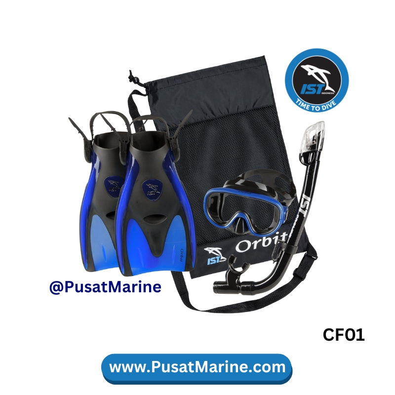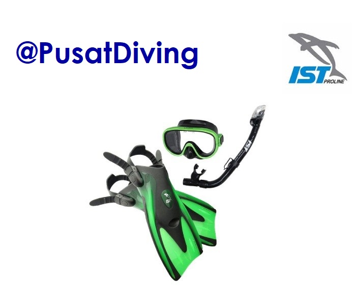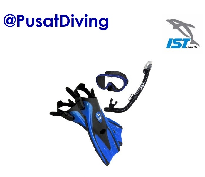 Mask + Snorkel + Fins made for snorkeling purpose. Colors : White-Blue, Black, BS-Blue, BS-Green Size : M & L
