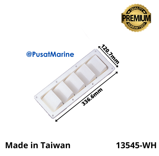 Ventilator UV stabilized ABS 13545-WH/-BK: White or black, 5 louvered, 336.6mm x 120.7mm